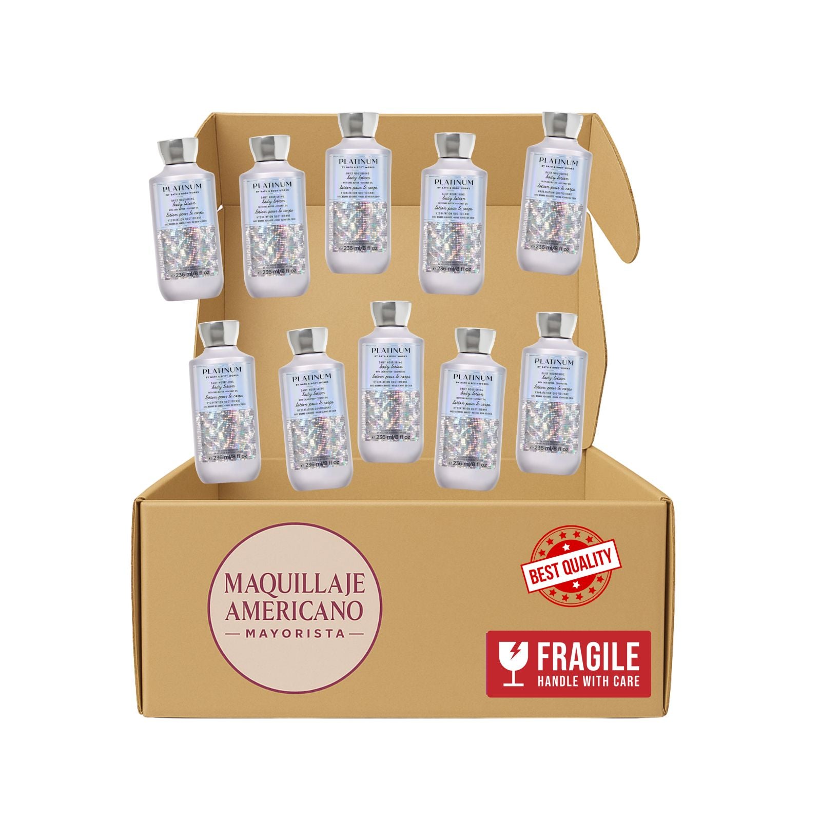 Incluye 10 lociones corporales originales de la línea Platinum Edition de Bath & Body Works, una de las colecciones más exclusivas y reconocidas por sus fragancias sofisticadas y fórmulas de alta calidad.